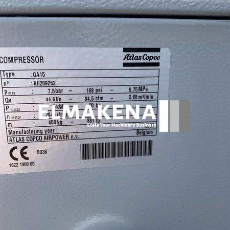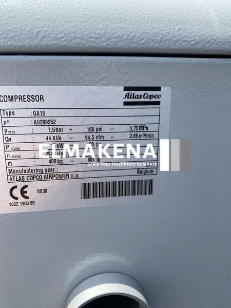 The Atlas Copco GA 15 is a robust and efficient rotary screw compressor designed for industrial applications.