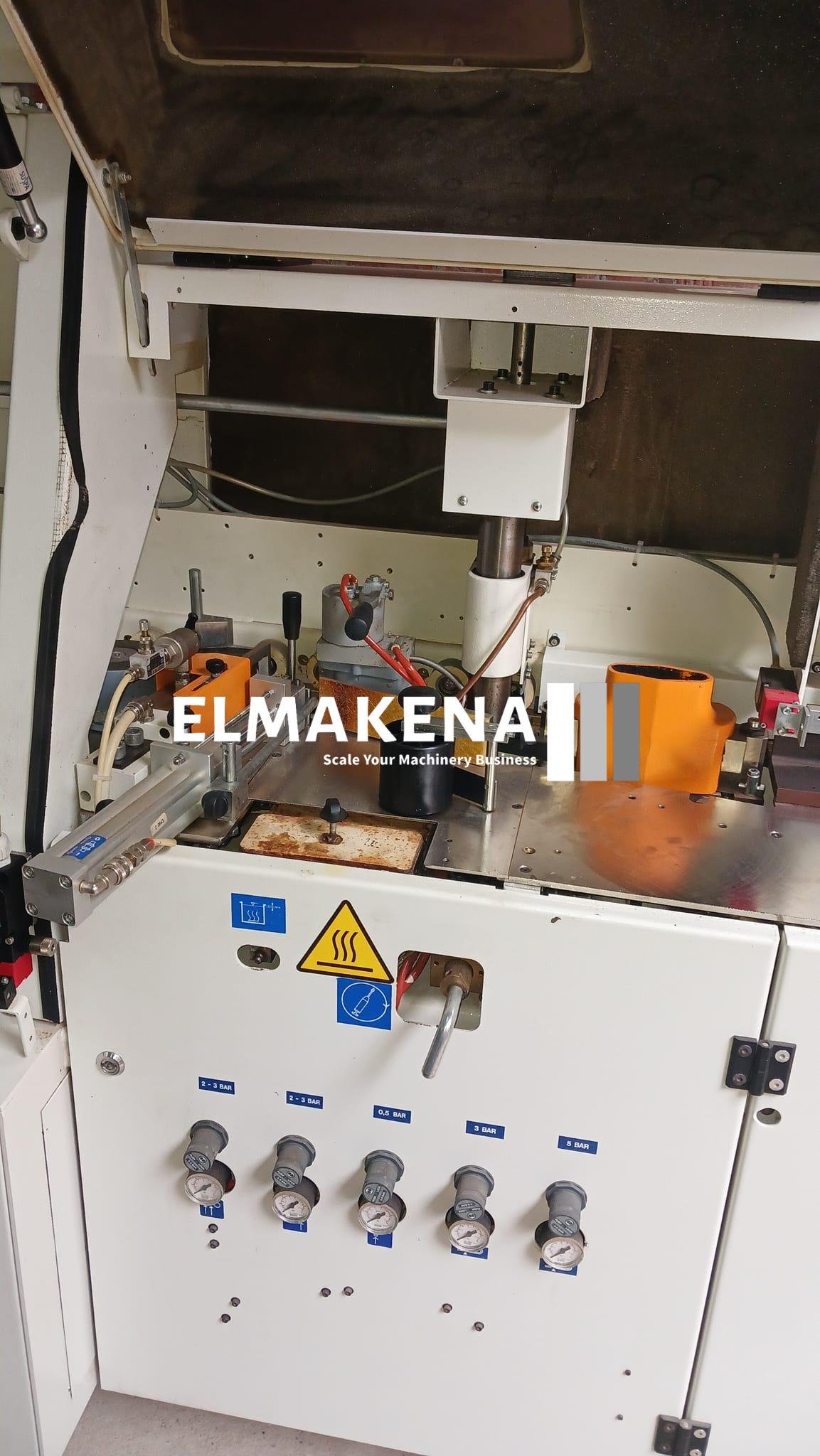 The Holz-Her Sprint 1310 is an edge-banding machine used in woodworking. Its primary function is to apply edge-banding material to the edges of wood panels using a glue system, followed by trimming and finishing units to create a clean and professional edge.